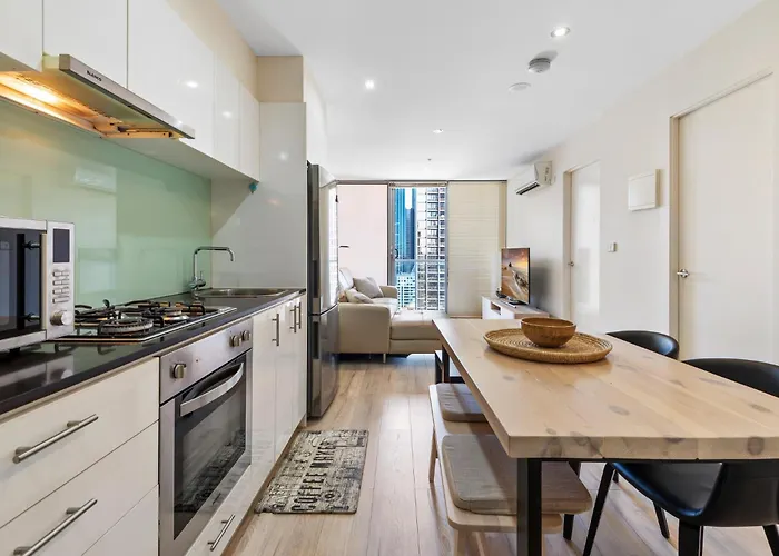 Modern City Convenience With Great Amenities Melbourne apartment offers easy access to such tourist sites as Original Authentic Aboriginal Art Gallery, located 6 minutes' walk away. Situated just 0.6 km from Coop's Shot Tower, this apartment offers a swimming pool for guests' enjoyment.